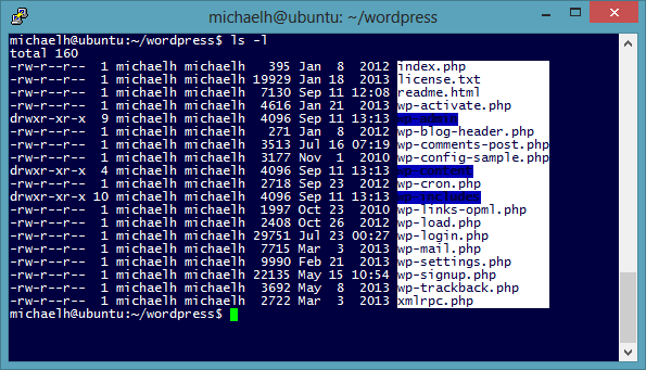 In this example the Rectangle Block selection has been used to copy the last column of ls -l output, allowed easy access to a list of file names without additional file metadata.